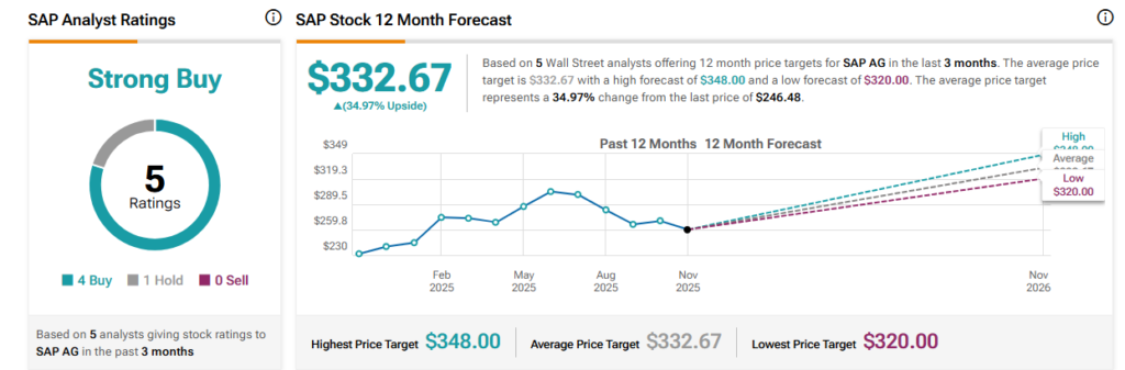 Looking at the company’s financial results, in 3Q25, total revenue came to 9.07 billion euros, for a 7% year-over-year increase. The company’s bottom line came to 1.59 euros per share, by non-GAAP measures. SAP reported a strong cloud backlog, totalling 18.8 billion euros, at the end of Q3; this figure was up 23% year-over-year.